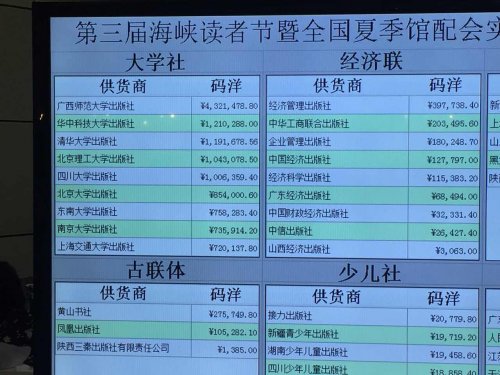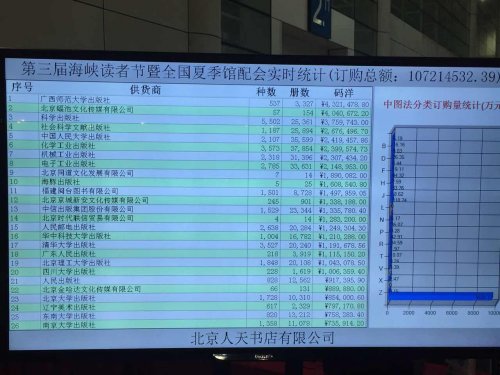 第三屆“海峽讀書(shū)節(jié)暨全國(guó)夏季館配會(huì)” 于4月22日在福州海峽國(guó)際會(huì)展中心圓滿閉幕。據(jù)現(xiàn)場(chǎng)實(shí)時(shí)報(bào)訂系統(tǒng)數(shù)據(jù)統(tǒng)計(jì),本屆館配會(huì)現(xiàn)場(chǎng)采書(shū)碼洋1.07億,我社貢獻(xiàn)碼洋75.8萬(wàn),創(chuàng)下歷史新高。 此次讀書(shū)節(jié)共邀請(qǐng)全國(guó)500余家出版社與200余家文化公司參展,展示超過(guò)15萬(wàn)個(gè)圖書(shū)品種,供全國(guó)1000家圖書(shū)館及福建省內(nèi)高校、中小學(xué)圖書(shū)館進(jìn)行圖書(shū)現(xiàn)采。東大社營(yíng)銷(xiāo)中心精選了超過(guò)1000個(gè)圖書(shū)品種參展,現(xiàn)場(chǎng)引導(dǎo)接待了來(lái)自全國(guó)各地的圖書(shū)館200家以上,服務(wù)對(duì)象超過(guò)300人次。在激烈的競(jìng)爭(zhēng)環(huán)境下,東大社表現(xiàn)突出。據(jù)現(xiàn)場(chǎng)發(fā)布的數(shù)據(jù)統(tǒng)計(jì)來(lái)看,各圖書(shū)館訂購(gòu)我社圖書(shū)820種、13212冊(cè),共計(jì)碼洋758000,在所有供貨商中排名第25位,大學(xué)社排名第7位,成績(jī)喜人。