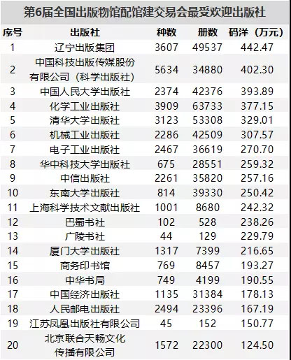 9月15日,由北京人天書店集團組織的第6屆全國出版物館配館建交易會暨2018全國館配商聯(lián)盟秋季訂貨會在沈陽閉幕。短短一天半的訂貨時間里,館配會現(xiàn)場采書冊數(shù)達151.45萬冊,采書總碼洋突破1.36億元,較春季館配會的數(shù)據(jù)有了大幅提升。 東大社館配數(shù)據(jù)在連續(xù)2年實現(xiàn)穩(wěn)定增長的背景下,為進一步發(fā)掘科技類圖書在館配市場的潛力,強化館配業(yè)務,提升館配服務,同時回饋一直以來支持東大出版的圖書館采購老師,精心策劃籌備了“砸金蛋”和“刮刮樂”兩場微信抽獎活動。活動吸引了大批采購老師,展架前人流不斷。據(jù)采書寶實時數(shù)據(jù)統(tǒng)計顯示,第一天的訂購結(jié)束之后,東大社在所有參會出版社中位列總碼洋第6名。 在為期兩天的訂貨會結(jié)束后,人天書店技術(shù)中心發(fā)布了數(shù)據(jù)統(tǒng)計。在訂購碼洋最高的出版社前20名中,共有大學類出版社5家、專業(yè)類出版社7家、古籍出版社4家、綜合類出版社2家、社科類出版社2家。東大社憑借814個圖書品種、39330冊圖書、250.42萬碼洋的成績,在所有參會出版社中位列第10,大學社中排名第4,創(chuàng)下了新的館配記錄。 東大社此次采購會所取得的優(yōu)異成績,是對近年來館配業(yè)務轉(zhuǎn)型升級工作的肯定。除了參加館配會、拜訪圖書館等常規(guī)性館配工作,東大社進一步細化了館配服務工作,由專人負責,通過QQ群、微信群等方式加強與圖書館采購老師之間的信息交流,定期發(fā)送電子書目,推薦重點新書,發(fā)布行業(yè)訊息。 作為一家以學術(shù)類圖書出版見長的大學社,館配市場愈發(fā)成為東大社一般圖書的重要銷售渠道。但同時,我們也清楚地認識到,受制于有限的圖書品種數(shù),想要進一步擴大館配規(guī)模,需要我們在立足長處的同時,擴大大眾圖書和學術(shù)精品圖書的出版,改進圖書的裝幀等外在形式,以方便圖書館的采編、流通。同時,加強與館配商的聯(lián)系和溝通,做好宣傳和推廣工作,多措并舉,以期進一步提升東大社在館配市場的競爭力和影響力。《出版?zhèn)髅缴虉蟆吩敿殘蟮啦⒎治隽舜舜勿^配會,鏈接如下:https://mp.weixin.qq.com/s/srny9mf1WcWQe44fY_2PmA ![]() |