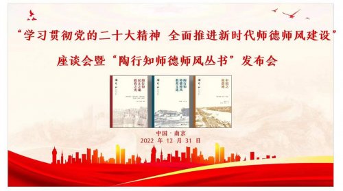 12月31日,“學習貫徹黨的二十大精神 全面推進新時代師德師風建設”座談會暨“陶行知師德師風叢書”發(fā)布會在南京曉莊學院線上線下舉行。本次發(fā)布會由南京曉莊學院教師教育學院、南京曉莊學院陶行知研究院、華中師范大學陶行知國際研究中心、東南大學出版社聯(lián)合舉辦。全國人大常委委員、湖北省人大常委會副主任、華中師范大學教授周洪宇,南京曉莊學院黨委書記張策華,東南大學出版社社長白云飛等出席會議并致辭。會議由南京曉莊學院校長張志華主持。來自南京大學、華中師范大學、華東師范大學等高校相關領導和教育學專家90余人以線上線下的方式參與了本次活動。